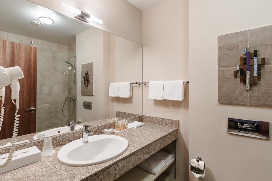Светлые номера с кондиционером оформлены в современном стиле и теплых тонах. В каждом номере есть телевизор с плоским экраном, мини-бар и собственная ванная комната.