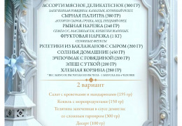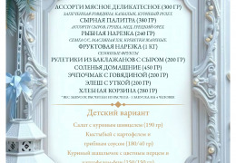 Меню:Алкоголь можно принести свой (наличие чека обязательно).